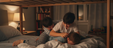I’m standing in the boys’ room, arms crossed, keeping a close eye on them so they don’t suddenly decide it’s time to wrestle instead of sleep.